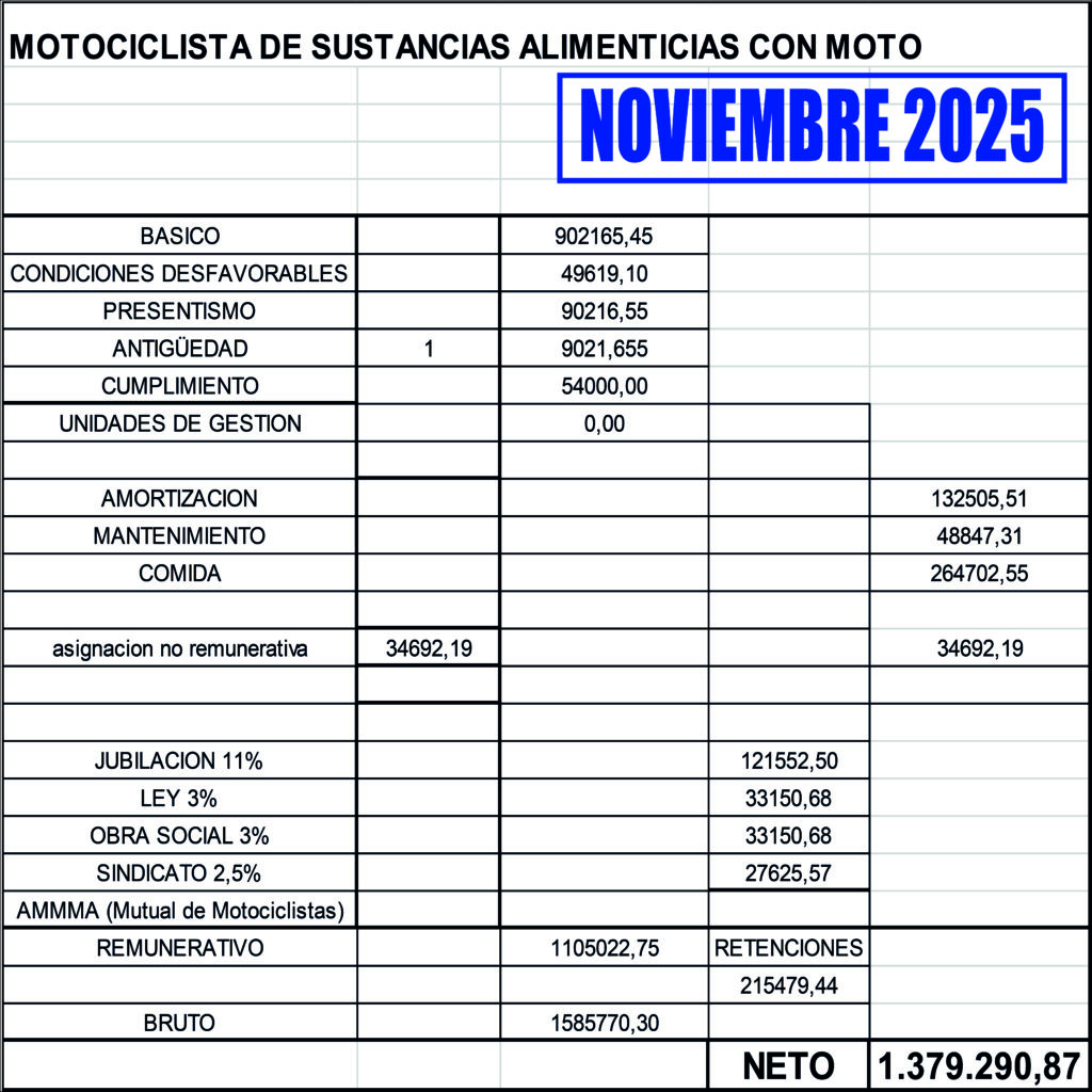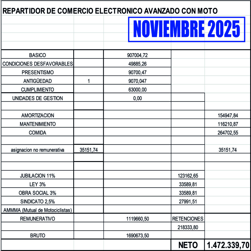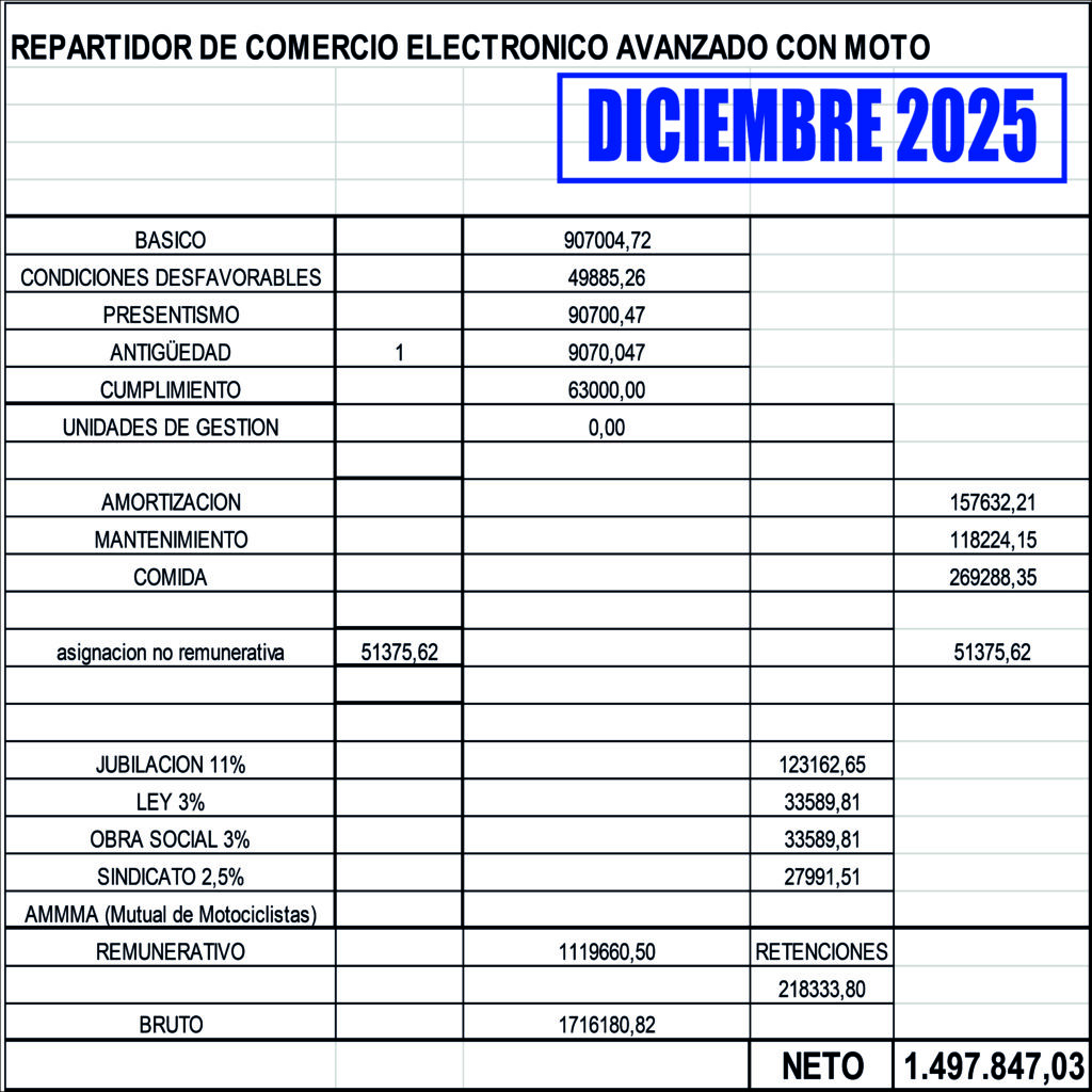 Escala salarial OCT-NOV-DIC 2025 RAMA GESTIONES RAMA COMERCIO ELECTRÓNICO RAMA SUSTANCIAS ALIMENTICIAS Share This Twittear Compartir Compartir Correo electrónico Entradas relacionadas Escala salarial JUL-AGO-SEP 2025 RAMA GESTIONES RAMA COMERCIO ELECTRÓNICO RAMA SUSTANCIAS ALIMENTICIAS Escala salarial ABR-MAY-JUN 2025 RAMA GESTIONES RAMA COMERCIO ELECTRÓNICO RAMA SUSTANCIAS ALIMENTICIAS NUEVO CCT ASiMM/CEMMARA CONVENIO COLECTIVO DE TRABAJO Capítulo A - DE LAS CONDICIONES GENERALES Capítulo B -… Esta entrada tiene 0 comentarios Deja una respuesta Cancelar la respuestaTu dirección de correo electrónico no será publicada. Los campos obligatorios están marcados con *Nombre * Correo electrónico * Web Guarda mi nombre, correo electrónico y web en este navegador para la próxima vez que comente. Comentario * Δ